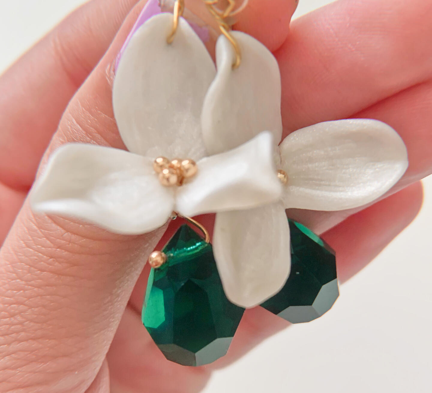 carefully crafted bag charms mimicking blooming vines.
